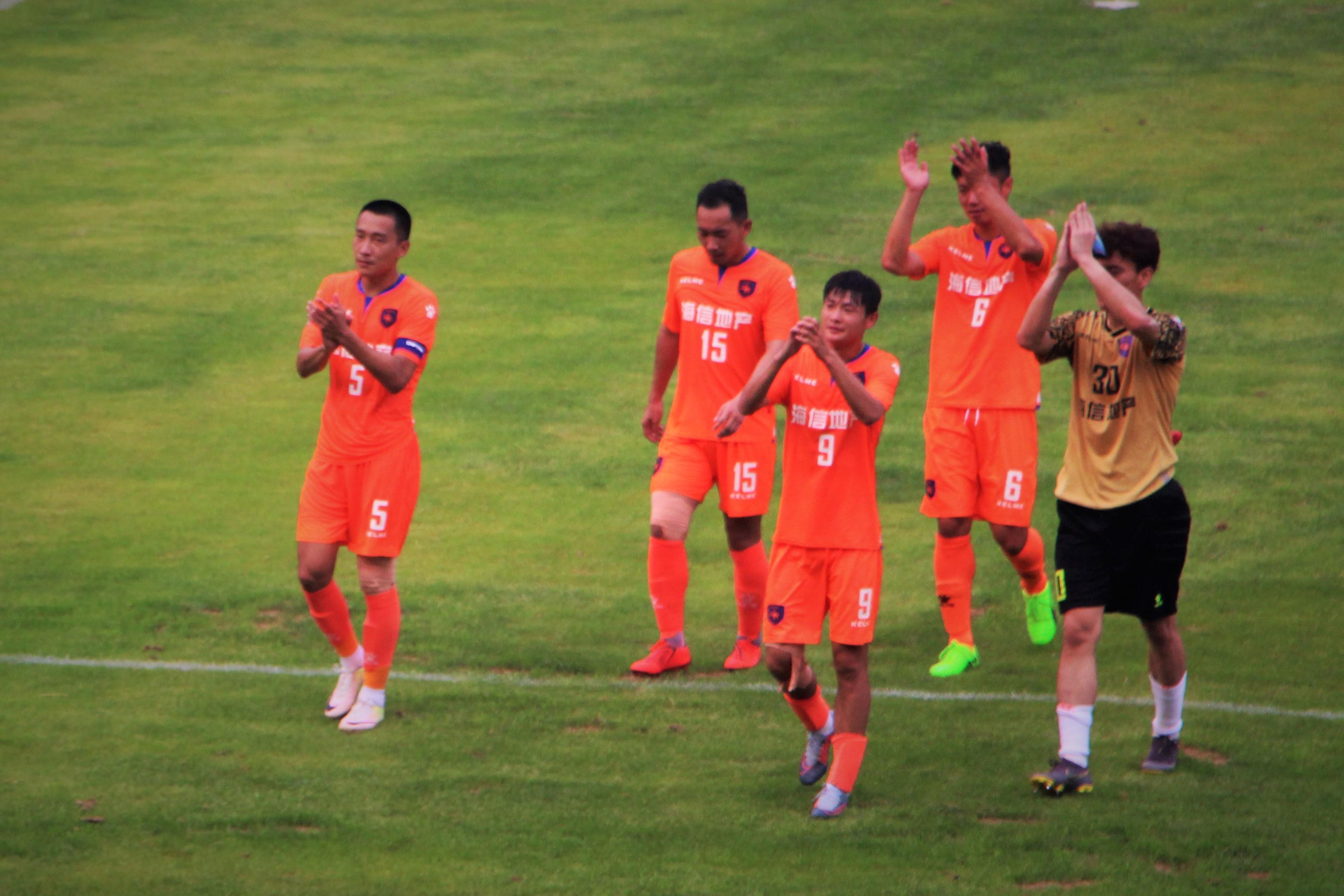 比賽結束后的謝場還是比較熱鬧的,畢竟現場一共只來了256個球迷,球員們心里估計也是有些感激的。球迷們呼喊著自己喜歡的球員,球員們則不斷對看臺報以掌聲。剛剛還在比賽場上各為其主的隊員們此時也變得親切友好起來,互相勾肩搭背交流著,似乎彼此之間已經很熟悉了。吉林百嘉的隊員們后是自己提著大包小包的裝備離開球場的,這在中乙聯賽似乎是很常見的一種現象,只能說在這樣的條件下還能繼續(xù)堅持職業(yè)足球,這群男人的追夢之心還是很令人敬佩了。