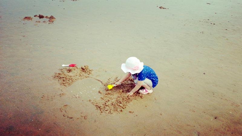 海邊的空氣真好,沙子細細的踩在腳底下很舒服,吹著海風,簡直愜意極了。