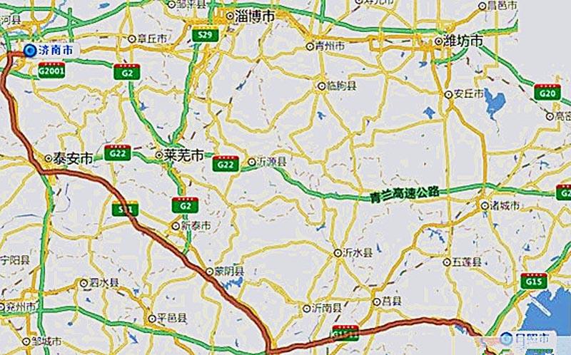 ②濟南東:上高速→G2001東環(huán)城南行→G2京滬(濟萊)→萊蕪杻紐立交右轉→萊蕪→新泰→杻紐立交左轉→蒙陰→杻紐立交左轉→G1511日蘭→東行→日照