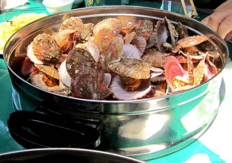 日照的扇貝,與我們平日在飯店吃的不太一樣,個頭小一些,貝殼上不平滑,多數(shù)是清蒸吃,口感嫩滑帶著些甘甜(所以我個人不蘸醋吃)。據(jù)說,這里扇貝是在近海里放苗養(yǎng)殖的,大海養(yǎng)殖無需投食療,其結果和自然生長的一樣,算是野生的吧,加上山東這段海域沒有工業(yè),所以也是無污染的。
