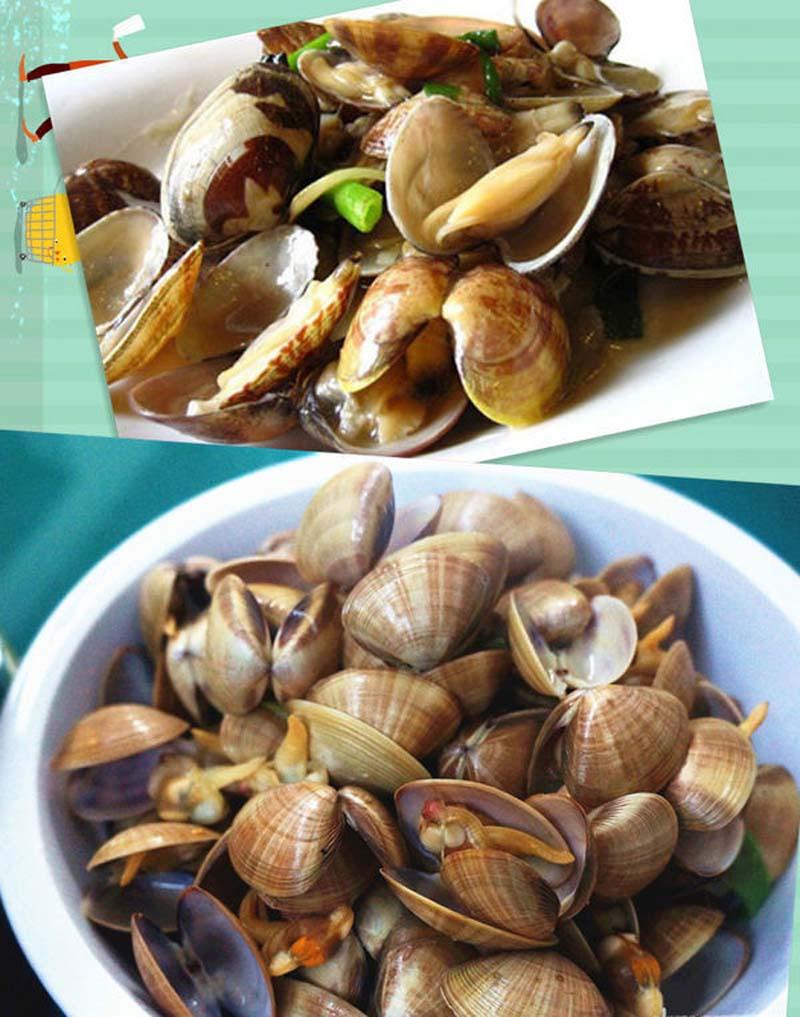 日照海鮮的另一大類,就是各種貝。當?shù)厝私小案蝌邸薄?我比較喜歡蛤蜊,吃起來輕松方便。蛤蜊還分了好幾種,我喜歡的是黃蛤喇,黃色貝殼的肉是胖胖的有一小塊黃,味道更好些。花蛤蜊便宜些,味道也還行。