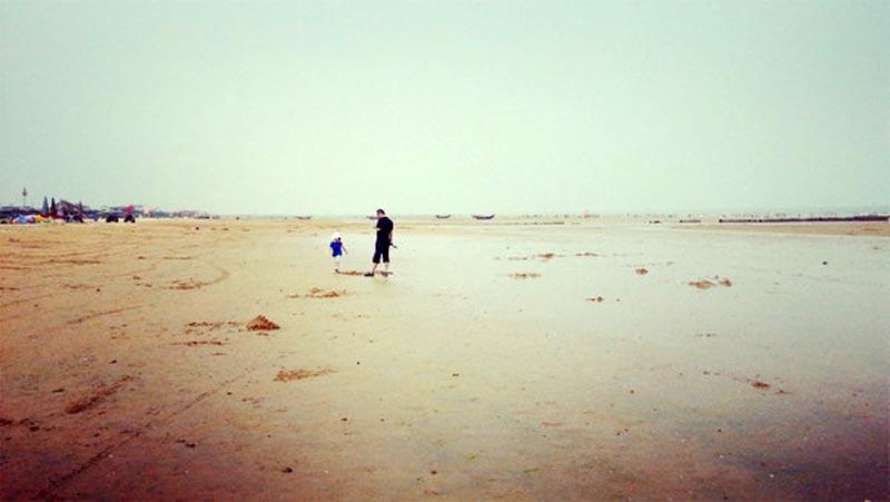 ①我們第一天下午去的吳家臺的海邊,海邊還有停車場,很方便,不過是收費的——10元。我們是端午節(jié)中午吃過飯下海玩的,因為還比較早,只有中午海水相對比較熱,可以洗澡。