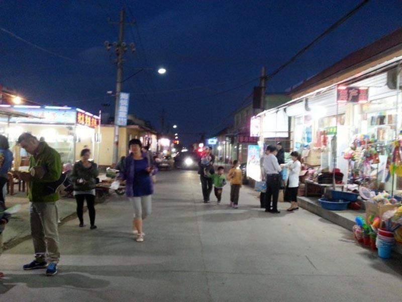②晚上我們在村里逛夜市,這里的也是和濟南的差不多,街上賣什么的也有,很熱鬧。