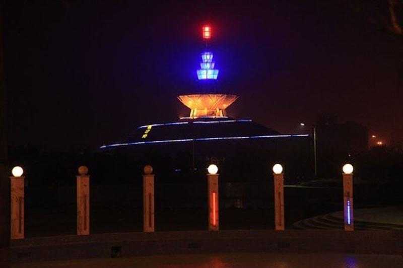 晚上又在這順帶看了個夜景,這是潮汐塔,聽老板說這個塔會隨海水漲退而變化。