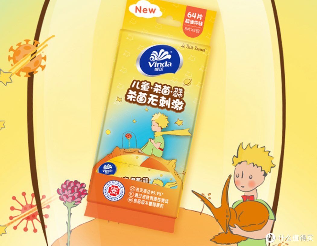 維達(Vinda)濕巾超迷你小王子兒童殺菌濕巾 —— 超mini尺寸的兒童專用濕巾娃開學,濕巾免不了攜帶,個人衛(wèi)生搞得好才能遠離病菌健康成長。這一款小王子兒童濕巾迷你。適合小朋友使用。而且也是方便攜帶,特別的可愛。采用的是質(zhì)地緊實的綿柔無紡布材質(zhì)。尺寸是150mmX140mm,也是經(jīng)過小朋友使用習慣優(yōu)化的設計。