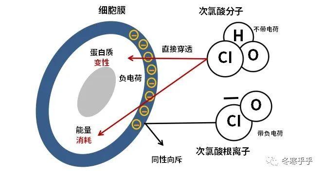 次氯酸殺菌原理:次氯酸分解形成新生態(tài)氧,新生態(tài)氧的極強氧化性使菌體和病毒上的蛋白質等物質 變形,從而致死病源微生物。次氯酸在殺菌、殺病毒過程中,不僅可作用于細胞壁、病毒 外殼,而且因次氯酸分子小、不帶電荷,還可滲透入菌(病毒) 體內,與菌(病毒) 體 蛋白、核酸、和酶等有機高分子發(fā)生氧化反應,從而殺死病原微生物。