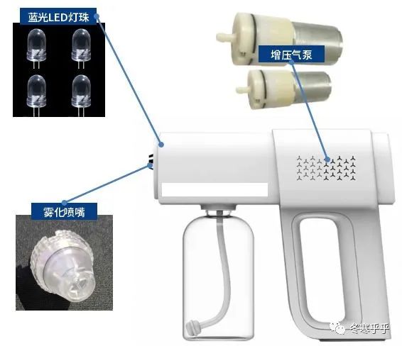 噴撒范圍廣:消毒液體霧化后噴灑范圍廣,大面積消毒,提高消毒效率;解放雙手:便攜手持,適用于家庭各個角落,方便收納;清楚消毒范圍:藍光的噴霧槍,起到照明的作用,能清楚觀察消毒范圍省事省力:傳統(tǒng)擠壓式消毒瓶,按久了費力不能持續(xù)噴灑,消毒噴霧槍一般采用電池驅動。液體通用:除了酒精*使用外,消毒液、驅蚊水、清水等都可以。其他功能:其工作原理跟加濕器一致,加水霧化噴灑能增加室內濕度,降低房屋溫度。掃地除塵、加入香薰液可以去除車內或市內異味、加入驅蚊液噴灑驅蚊、加入甲醛液去除甲醛等使用范圍廣:家庭空間、汽車空間、收取快遞、衣物都可以處理。*特別注意:裝填酒精等易燃液體,噴霧一定要遠離火源,不能對人體鼻、口噴灑。值得注意的事項:1、消毒噴霧槍的藍光是由LED藍色燈珠產生的,不是紫外線燈,所以是沒有消毒作用的。而真正的紫外線燈起到殺菌消毒的關鍵指標分別是大功率、遠距離、長時間、照射表面以及在密閉暗環(huán)境中。所以現(xiàn)有的噴霧槍產品是起不到消毒作用的,但是能夠可以作為辨別消毒方向和范圍的指示燈。