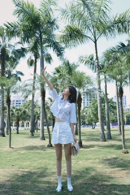 look1 白色鏤空短襯衣+短裙在暖暖的春天,白色是百搭又時髦的顏色,而且白色給人以清新自然的氣息,女生穿上一身白色會給人一種清新的初戀感,好看。