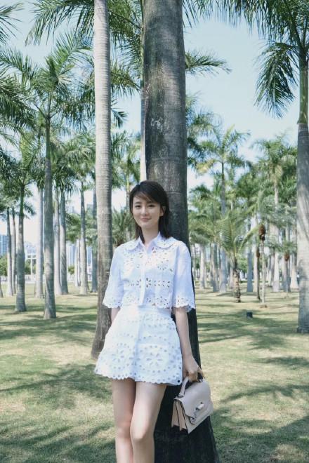 喬欣選擇一套白色鏤空短襯衣搭配A字小短裙,俏皮又可愛的少女穿搭,簡直太適合春天了,A字短裙,露出修長的大腿,顯高顯瘦,這套穿搭也會很適合小個子女生,顯高又顯瘦,腳上搭配一條小白鞋搭配白色短襪,就是減齡的學院風穿搭啦,甜美又少女。再配上一個手拿的小方包,更顯溫柔大方,淑女范兒十足。