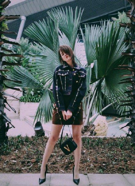 look5 黑色牛仔外套+棕色皮褲甜美風和氣質(zhì)風都很適合喬欣,其實喬欣更加適合街頭暗黑酷帥風,搭配一件黑色的鉚釘牛仔外套+小短裙,簡直潮爆了,露出大長腿,颯氣十足,又A 又欲的街頭潮酷風穿搭,這樣的喬欣你覺得可嗎?