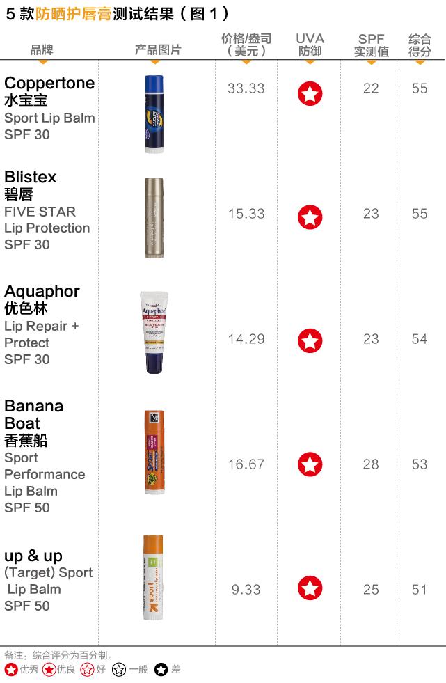 2016年5月,Consumer Reports測試了5款標(biāo)稱SPF值為30或更高的防曬護(hù)唇膏。