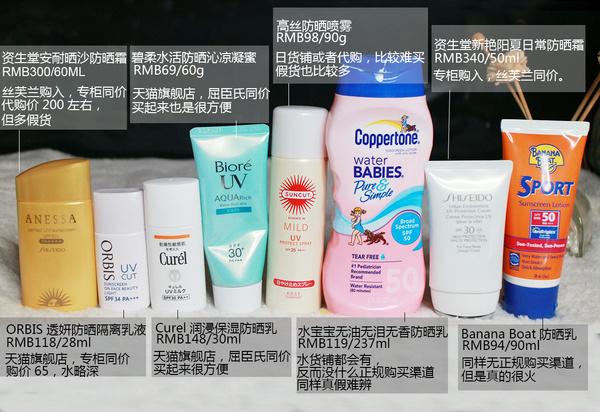 防曬效果:小金瓶>碧柔>Curel>香蕉船>水寶寶>ORBIS>資生堂>KOSE