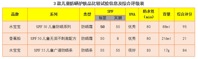 本次測評中,6款產(chǎn)品實測SPF值低于標(biāo)稱,其中香蕉船兒童防曬霜差距大,謹(jǐn)慎選購。