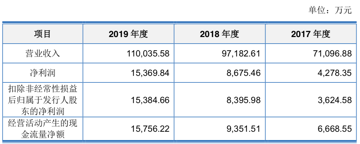 招股書顯示,2017年至2019年的報告期內(nèi),科思股份營業(yè)收入分別為7.11億元、9.72億元和5.71億元,2018 年和2019 年營業(yè)收入增幅分別為 36.69%和 13.23%;凈利潤分別為4278.35萬元、8675.45萬元和6786.04萬元,其中2018 年和2019 年凈利潤增幅分別為102.78%和77.16%。