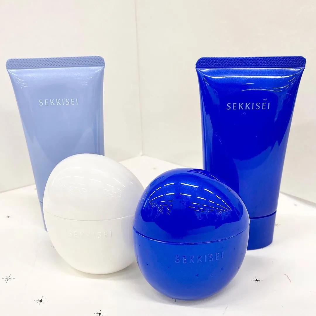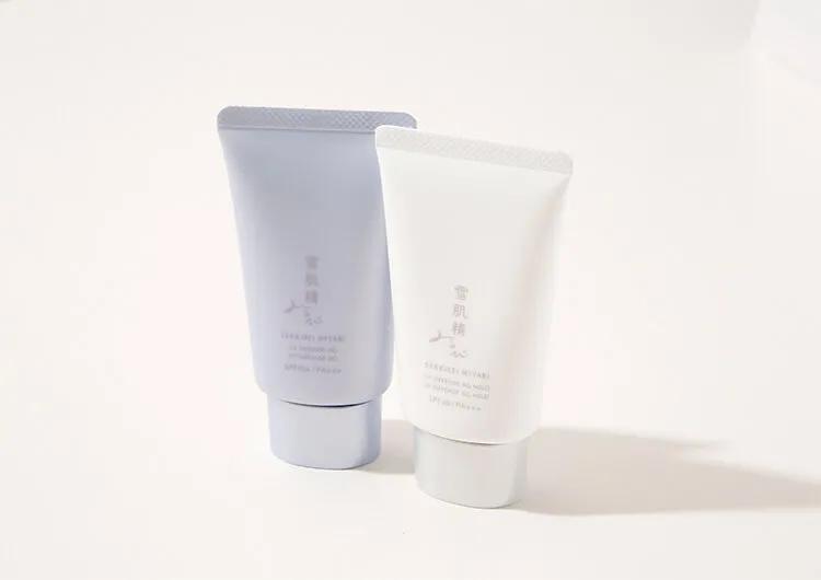 防曬啫喱(藍(lán)管),則是偏乳液質(zhì)地。兩者都是SPF50+/PA++++的高防曬系數(shù)。而且都添加了70%的雪肌精成分ITOWA。
