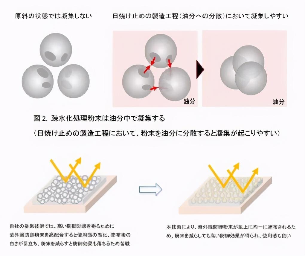 就是將紫外線防御粉末+自家開(kāi)發(fā)的分散成分配合,經(jīng)特殊高壓處理,變得穩(wěn)定的分散狀態(tài),即使少量涂抹也能防曬果。