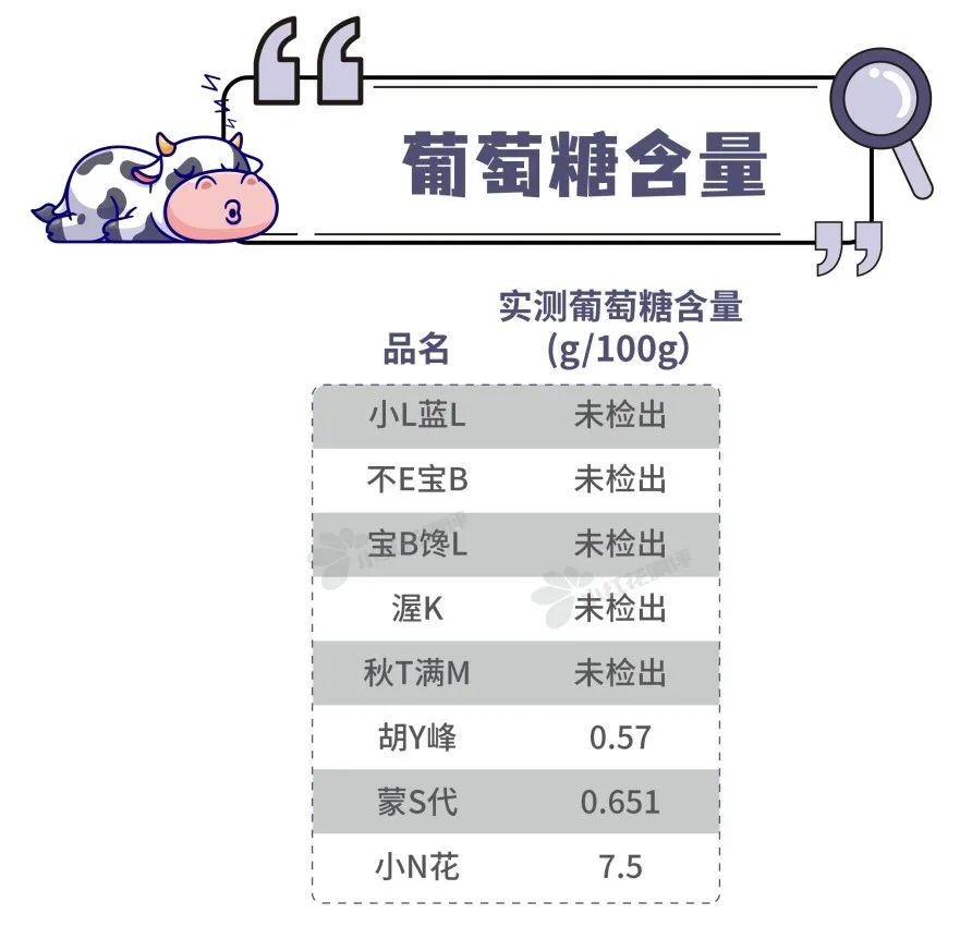 8款奶片實(shí)測葡萄糖含量如下: