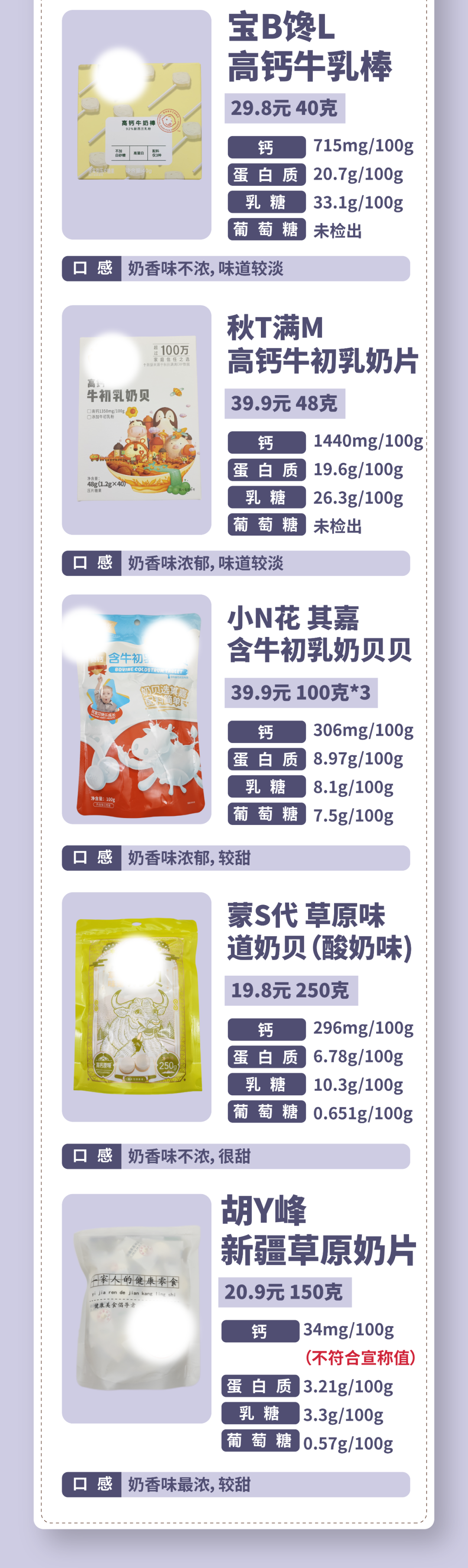 蒙S代、小N花、胡Y峰奶片三款檢出葡萄糖,其余均未檢出。
