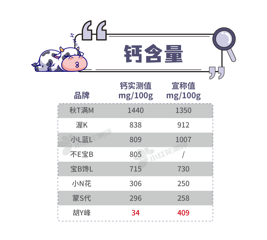 胡Y峰鈣含量低,僅為34mg/100g,是宣稱值的十二分之一,不符合《預(yù)包裝食品營養(yǎng)標(biāo)簽通則》中鈣實(shí)際值不得低于宣稱值的80%的規(guī)定。
