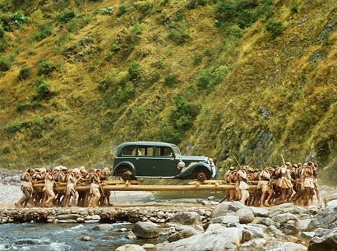 人們臺著第一輛車到加德滿都山谷,它們翻過山丘大約100英里,因為山谷沒有道路連接。