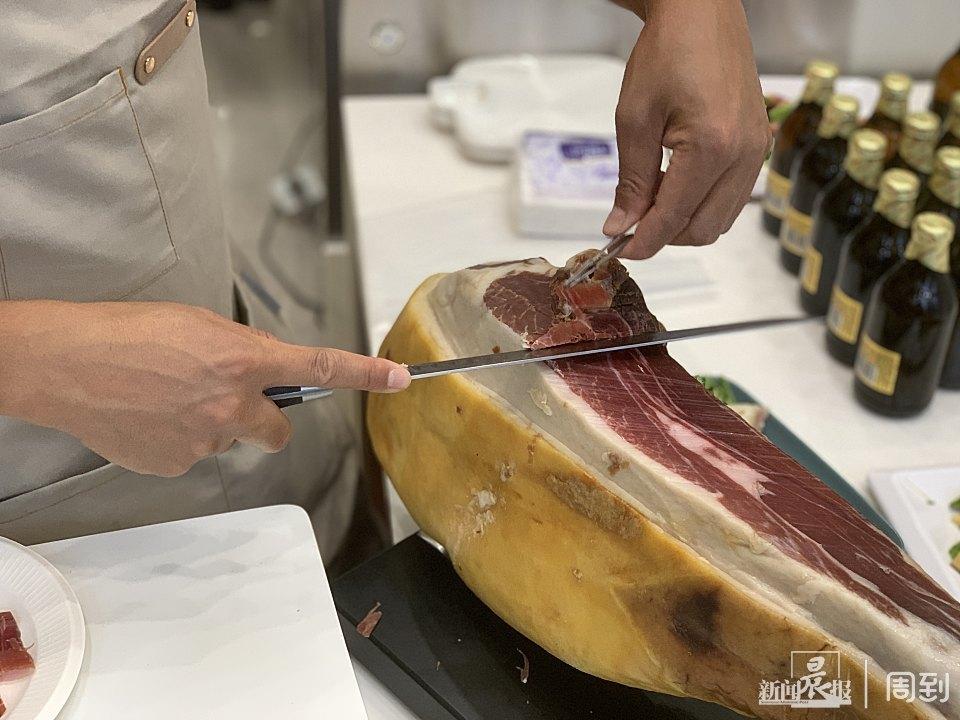 售價1014元一斤的西班牙進(jìn)口黑毛豬火腿是店里的,不少顧客在體驗過其風(fēng)味后,都已成為“回頭客”,“味道跟國內(nèi)火腿不一樣,它的肉質(zhì)更緊實,香味更濃郁?!鳖櫩屠钕壬f道。
