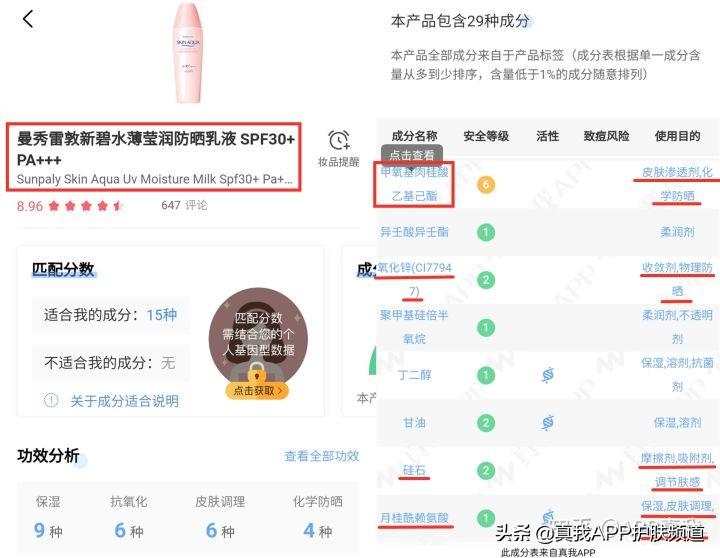 建議和小編一樣,選擇產(chǎn)品之前用真我APP查詢一下產(chǎn)品成分,這樣真我APP就可以根據(jù)大家膚質(zhì)測試的數(shù)據(jù),進行產(chǎn)品匹配得出準確數(shù)據(jù),適不適合使用就一目了然了!