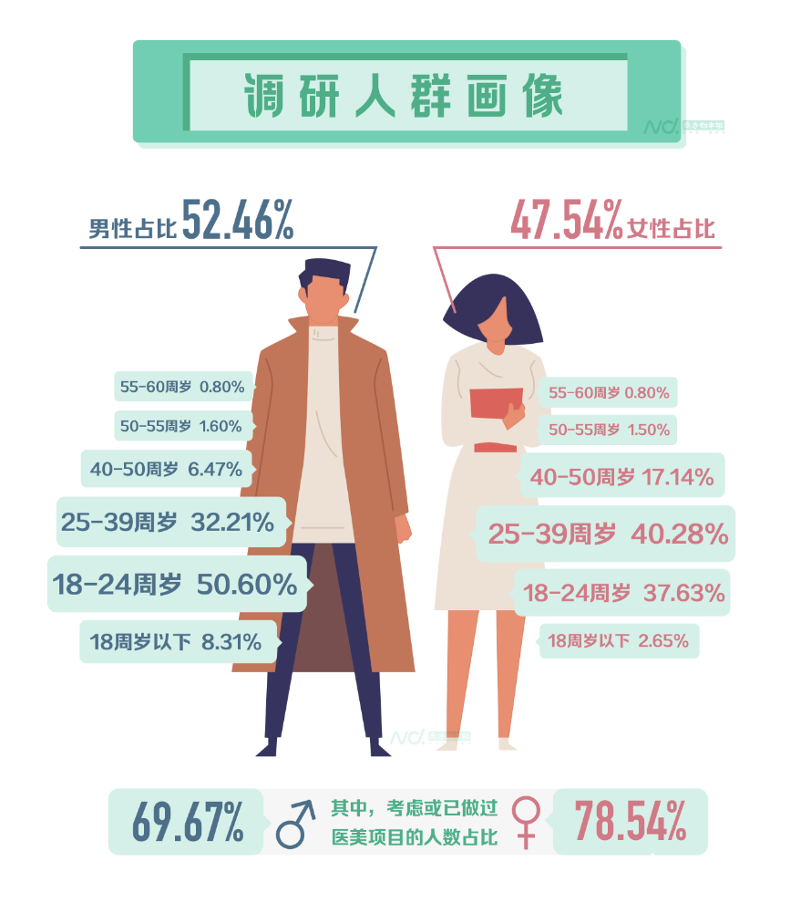 在南都回收的2381份調(diào)查問(wèn)卷中,53.61%的人有不同程度的容貌焦慮,這些人群里一半以上是男性??梢?jiàn)男性對(duì)醫(yī)美的參與度在逐步提高,并渴望通過(guò)醫(yī)美來(lái)緩解焦慮。