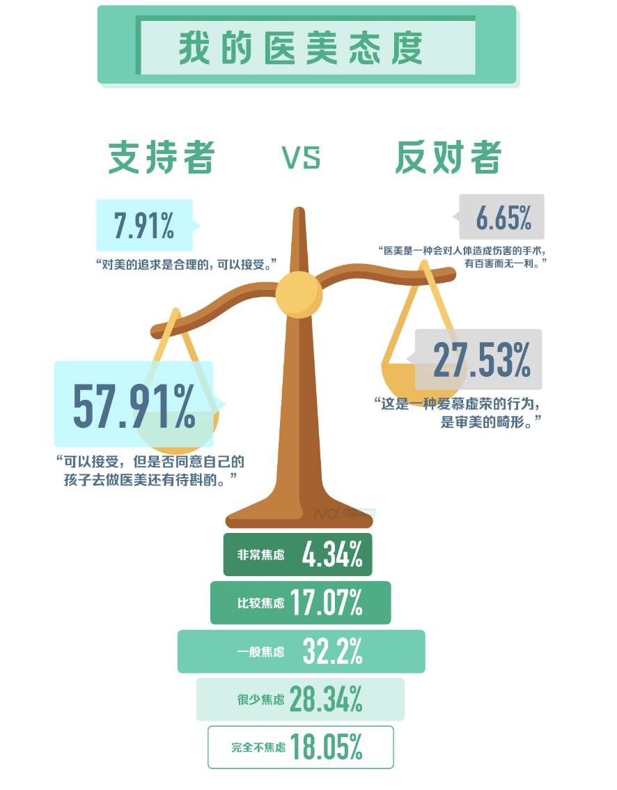 受到醫(yī)美相關(guān)知識(shí)的普及,性和專業(yè)性的提高以及目前仍舊存在的“顏值為王”意識(shí)的影響,近半數(shù)消費(fèi)者對(duì)于醫(yī)美的態(tài)度都較為堅(jiān)定。