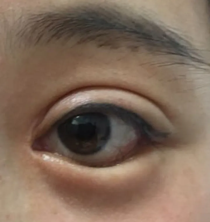 做完手術(shù)后的小美眼睛下眼瞼凹陷,弧度極不自然。