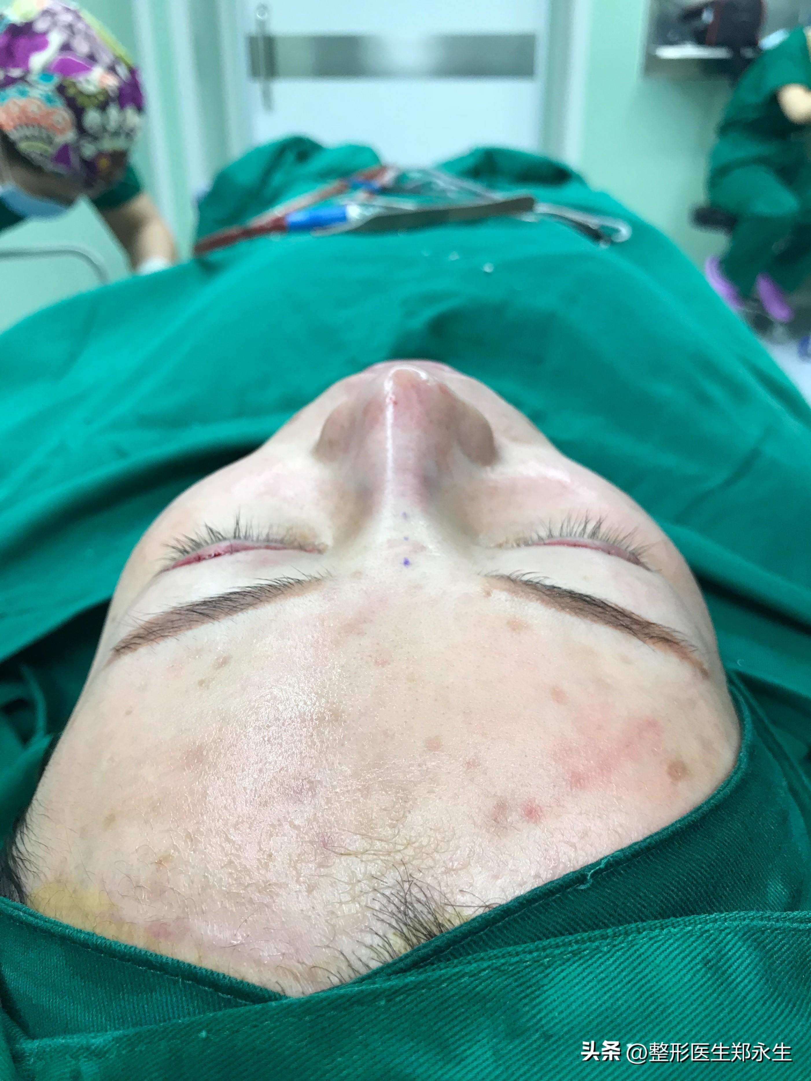 面診后,教授發(fā)現(xiàn)我鼻基底凹陷,如果當時是他給我定方案,就不會是鼻骨內(nèi)推了,第一是危險性大,很容易就出現(xiàn)鼻子偏曲的情況,第二效果也并不,根據(jù)我的臉型不需要內(nèi)推,把鼻基底填充好,然后墊高鼻梁,立體度一下子就出來了。