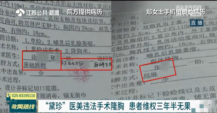 據(jù)江蘇新聞消息,徐州市民鄭女士向《政風(fēng)熱線》反映:三年多前,她在當(dāng)?shù)氐镊煺溽t(yī)療美容門診部做了眼部和胸部整形手術(shù),可術(shù)后,她卻發(fā)現(xiàn)自己的視力越來越差,而整形過的胸部也疼痛難忍,傷口難以愈合。經(jīng)過多次投訴,她才知道這家機(jī)構(gòu)竟然沒有從事隆胸及麻醉手術(shù)的資質(zhì)。對于院方如此的過錯(cuò),鄭女士的維權(quán)之路卻是無比坎坷。