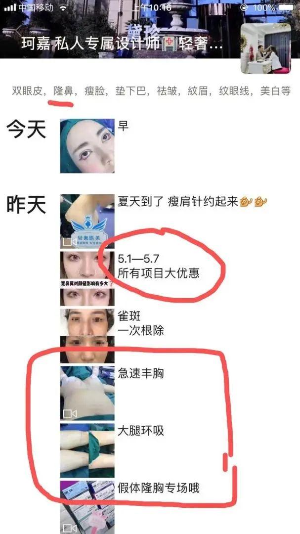 不過當(dāng)時(shí)作出的處罰對這家機(jī)構(gòu)并沒有實(shí)質(zhì)影響。在被吊銷美容外科后,馬女士看到黛珍醫(yī)美仍在朋友圈宣傳隆鼻、隆胸、抽脂等美容外科項(xiàng)目,并稱五一期間所有項(xiàng)目大優(yōu)惠。