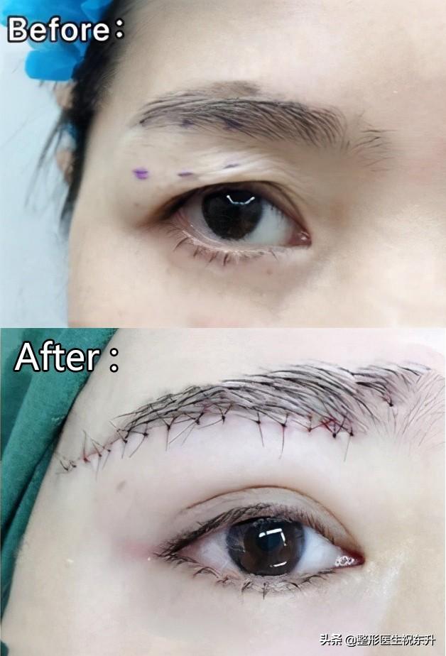 若從切口方面考慮,眉下切口位置更隱蔽一些(有的人眉毛好的什么都不做就能遮住疤痕),不過后期通過畫眉或者紋眉遮擋都不會影響美觀。
