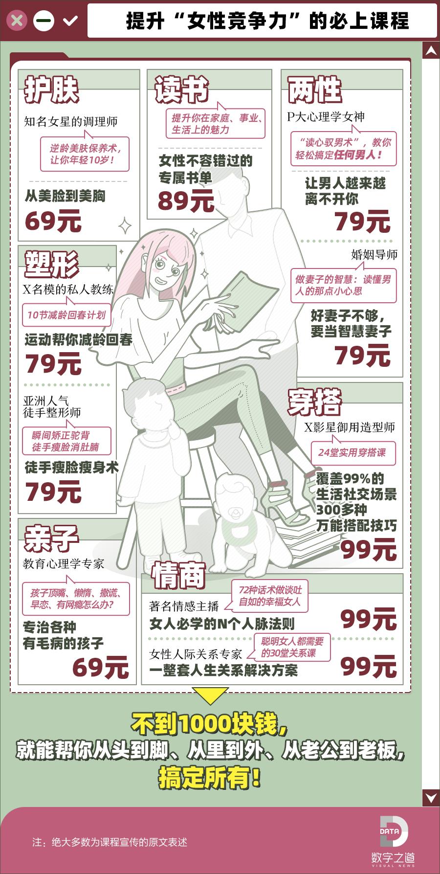 注:稿件中引用的女性付費(fèi)課程都有來源,我們細(xì)微地做了處理,不是怕他們來告我們,而是不想給他們帶來一絲流量!哼!