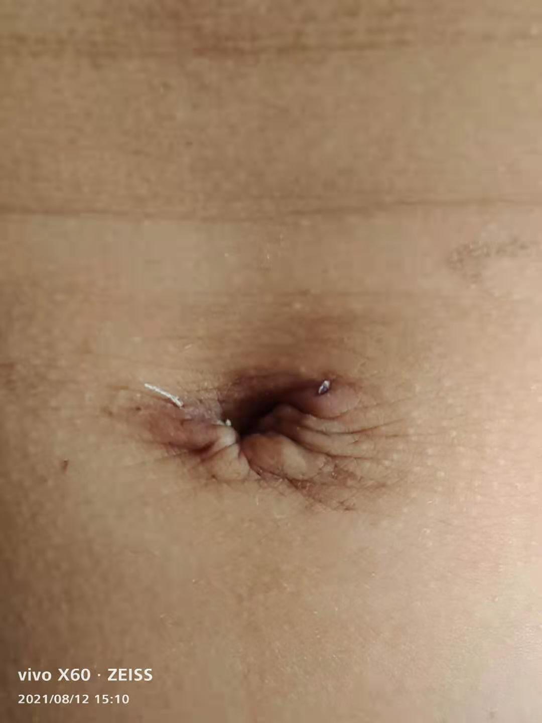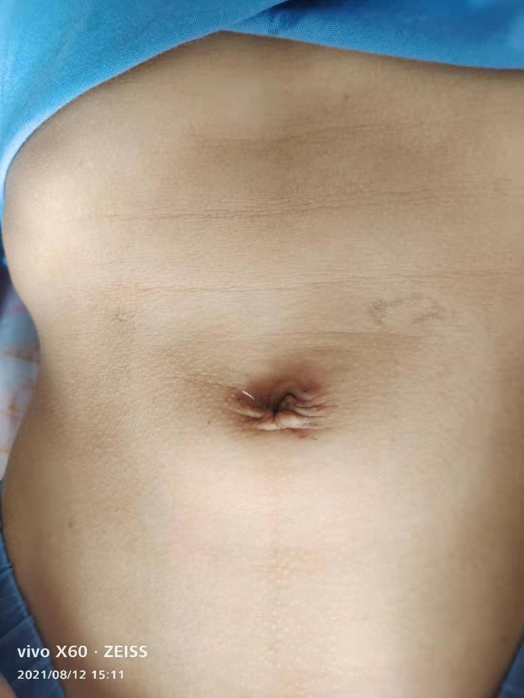 這個(gè)孩子我采取的是臍環(huán)下方弧形小切口,比腹腔鏡微創(chuàng)手術(shù)切口還少兩個(gè),愈合后基本看不出手術(shù)疤痕。