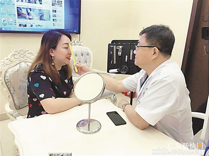 ■軍博士為羅女士講解鼻整形設(shè)計理念。