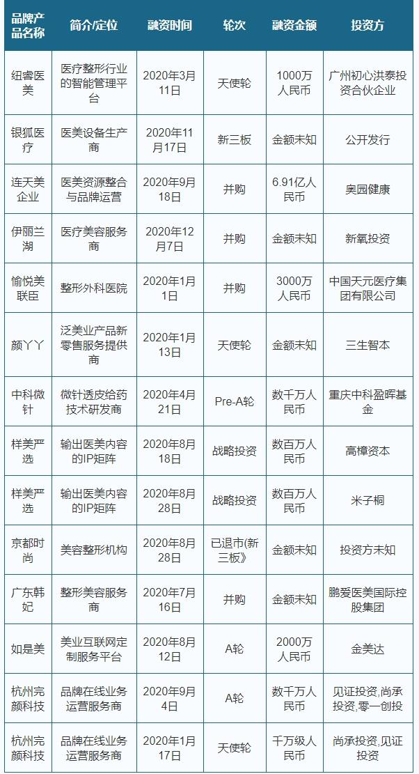 表:2020年我國醫(yī)美品牌投融資事件列表 資料來源:公開資料整理