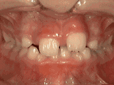 開合,即使閉嘴,上下牙齒也不接觸,留出空隙,經(jīng)過矯正后的牙齒是這樣的~