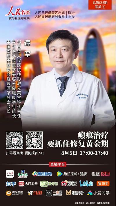 據(jù)不完全統(tǒng)計(jì),我們每年產(chǎn)生的瘢痕患者大概有2,600萬。近年來,由于人們越來越重視對美的追求,瘢痕調(diào)節(jié)逐漸成了患者的剛性需求。燒傷、燙傷、車禍、運(yùn)動摔傷或者意外創(chuàng)傷、各種手術(shù)包括美容手術(shù)如雙眼皮、鼻整形、乳房整形、抽脂等切口瘢痕甚至是點(diǎn)痣去斑等都可能留下瘢痕。近期,人民日報(bào)健康客戶端名醫(yī)科普直播欄目《人民名醫(yī)》邀請了專家譚軍教授,對瘢痕的成因、預(yù)防及調(diào)節(jié)相關(guān)的九大問題做出解答。
