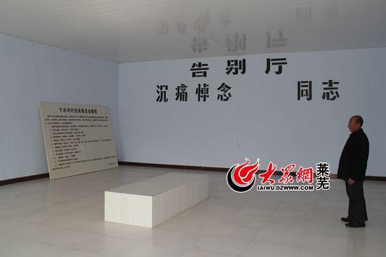 200多平米的告別大廳,男女接待室、廚房、鍋碗瓢盆等一應(yīng)俱全。在萊蕪市口鎮(zhèn)下水河村,率先開辟了文明殯葬的先河,“自打俺村建起了告別大廳,村民葬禮費用比以前減少近九成?!秉h支部書記鄭傳堯介紹說。減少九成,意味著逝者遺屬無需為了顯示孝心大肆鋪張浪費講排場,同時也給全村生態(tài)文明建設(shè)節(jié)約了成本。
