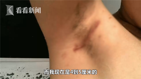 劉小姐表示,“還有假體隆胸,腋窩下(有疤痕),人家其他人做的假體隆胸,(疤痕)大概2到3厘米的傷口,而且術后半年(就好),我差不多現在已經有半年了,我現在是4到5厘米的,還增生了,就很難看。”
