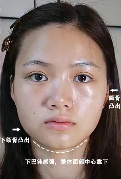下頜線突出、下巴鈍感強(qiáng)主要是因?yàn)橄骂M緣拐點(diǎn)過低,高度接近下巴。