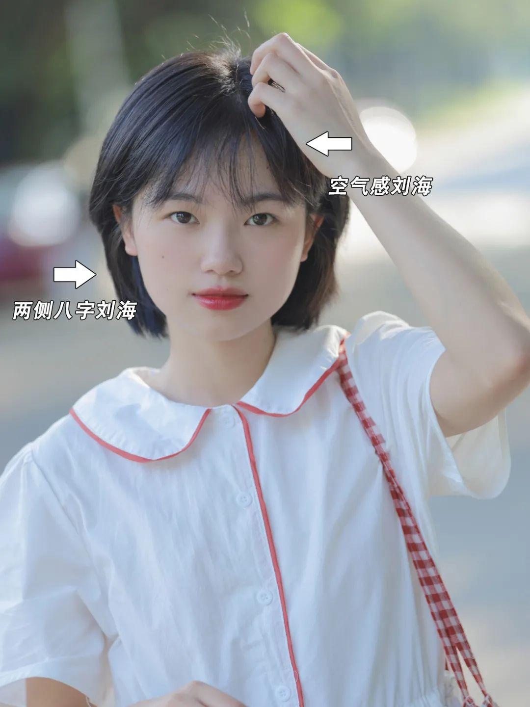 劉海部分是空氣劉海+兩側(cè)八字劉海的組合,空氣劉海氧氣感足,既能修飾發(fā)際線,又不會(huì)完全遮擋額頭,我們的視覺中心依舊在眼鼻;而八字劉海能修飾臉部線條,高顴骨、高下頜角都被隱藏了,簡直是方圓臉姐妹yyds!
