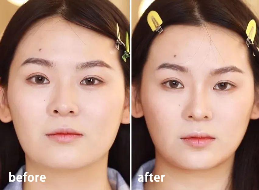 方圓臉的下頜骨普遍,這時(shí)候,姐妹們就可以利用修容弱化下頜骨的存在感,先給你們康康效果,下巴是不是瞬間小一圈?
