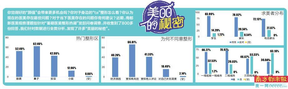 你覺(jué)得好的“顏值”會(huì)帶來(lái)更多機(jī)會(huì)嗎?你對(duì)于身邊的“ta”整形怎么看?你認(rèn)為現(xiàn)在的醫(yī)美存在哪些問(wèn)題?對(duì)于當(dāng)下醫(yī)美存在的問(wèn)題你有何建議?近期,南都新醫(yī)美觀察課題組針對(duì)“暑期醫(yī)美整形熱潮”發(fā)起問(wèn)卷調(diào)查,并收集到了800多份回答,我們針對(duì)數(shù)據(jù)進(jìn)行分析,發(fā)現(xiàn)了許多“美麗的秘密”。