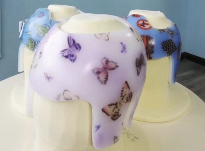 客服告訴記者頭盔材料主要是聚乙烯以及高抗敏材料,如泡棉等,經(jīng)過(guò)查詢,以上材料均為常見(jiàn)的頭盔材料,沒(méi)有特殊之處。使用方法上,需要嬰兒全天候佩戴,除去洗澡、換衣服的間隙,就連睡覺(jué)都需要佩戴?!耙话愕谝粋€(gè)月就會(huì)有變化,后期慢慢對(duì)稱”。