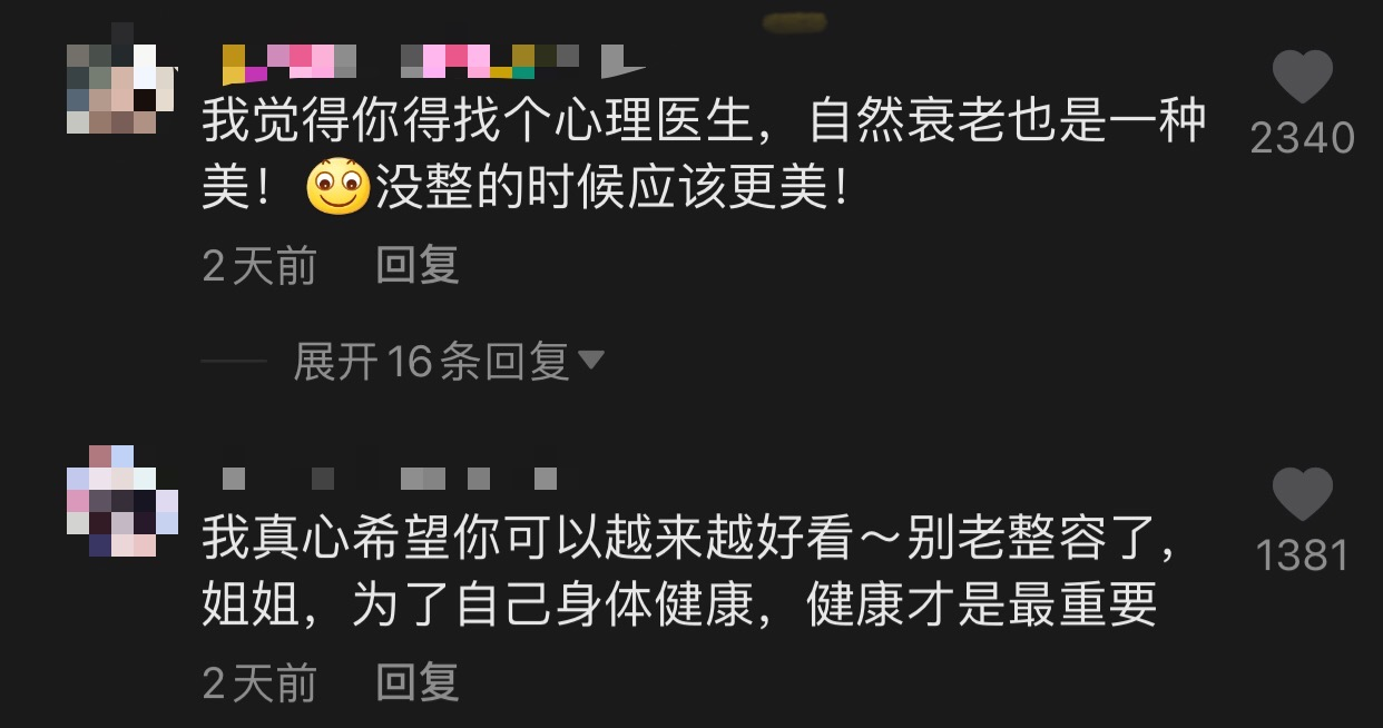 看不下去的網(wǎng)友卻勸她別整容了,身體健康重要,甚至還讓她去看看心理醫(yī)生。