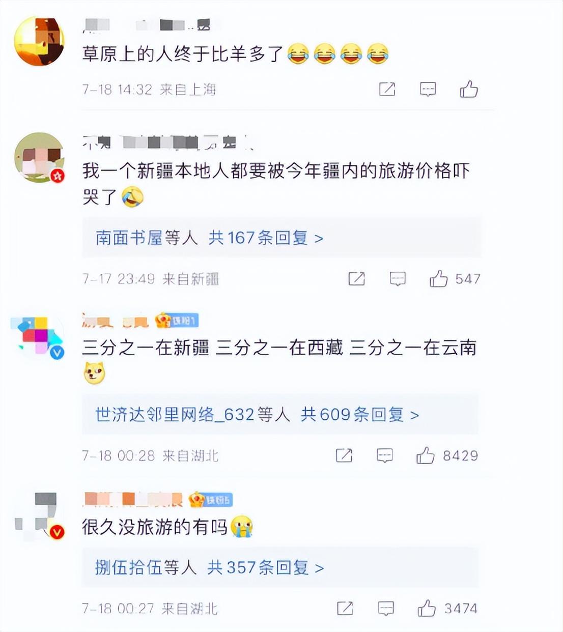 看了眼新疆文旅廳的數(shù)據(jù),5月全區(qū)5A級旅游景區(qū)日均接待游客才1.9萬人次,到了6月就變成了5.73萬人次,7月直接突破11萬人次。