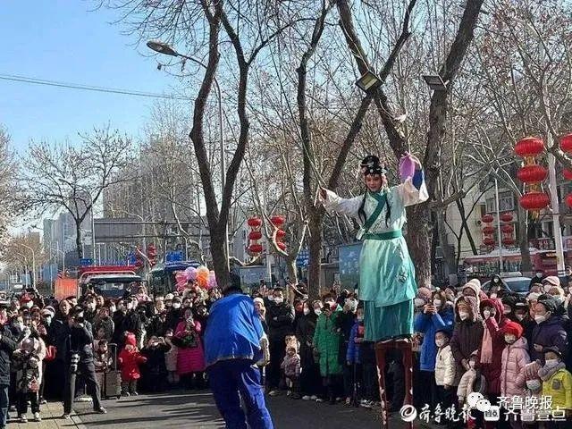看踩高蹺表演,是不少人心中的過年記憶,而濟南有著一支兩百年的高蹺隊——濟南西關(guān)高蹺隊。鑼鼓聲響起來,表演者們臉上畫著厚厚的妝容,身上穿著多彩的服裝、腳上踩著高度不等的高蹺緩緩步入表演場地,濟南西關(guān)高蹺隊今年也如約開演了。
