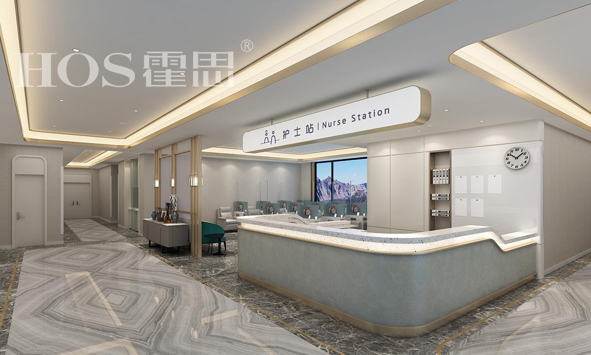 如果條件有限,也可以對(duì)空間作小尺度的設(shè)計(jì)——降低護(hù)士站臺(tái)面高度,延伸視覺,塑造開闊感。